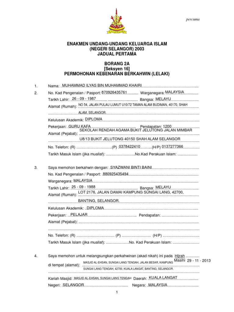 Borang Nikah Selangor Pdf Supaloe